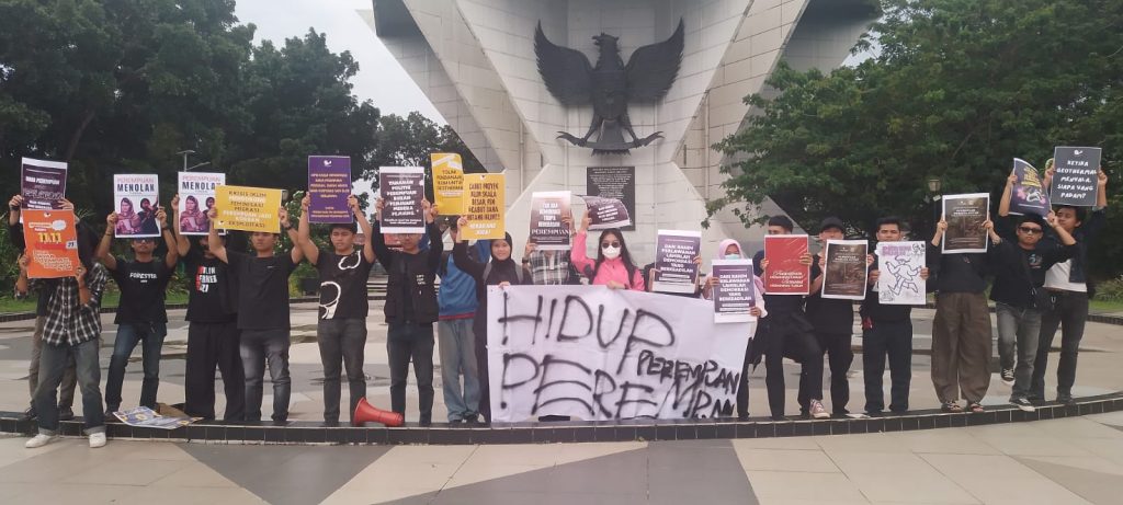 Sejak pukul 15.00 WIB, peserta berkumpul di Taman Monpera. Mereka kemudian berjalan ke depan monumen, berdiri diam selama 30 menit sambil mengangkat poster. Diam bukan berarti pasif, diam menjadi simbol perlawanan terhadap sistem yang gagal melindungi perempuan.